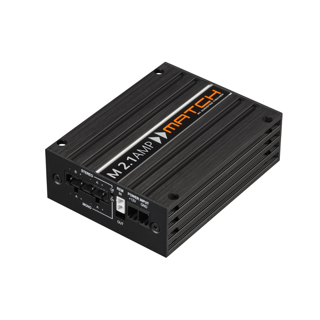 En los vehículos modernos, el espacio disponible para actualizaciones de sonido es cada vez más limitado y presenta nuevos desafíos para los instaladores, especialmente con configuraciones de múltiples dispositivos. Gracias a sus dimensiones mínimas, los microamplificadores MATCH como el M 2.1 AMP se pueden montar incluso en las condiciones de espacio más difíciles y abren nuevas posibilidades inimaginables en la elección de la ubicación de instalación y, por lo tanto, permiten conceptos de instalación discreta.