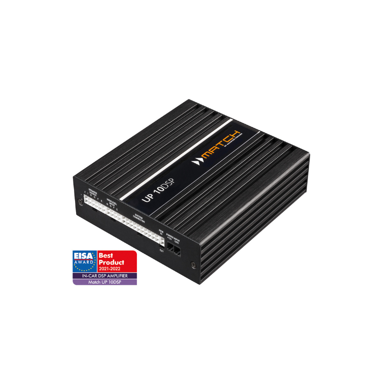 El extremadamente potente procesador de señal de audio de 64 bits ofrece nueve canales DSP. Cuatro salidas RCA configurables libremente permiten la conexión de amplificadores adicionales, como el amplificador MATCH M 2.1AMP. Esto permite sistemas multicanal complejos, que ahorran espacio y con un enorme rendimiento.