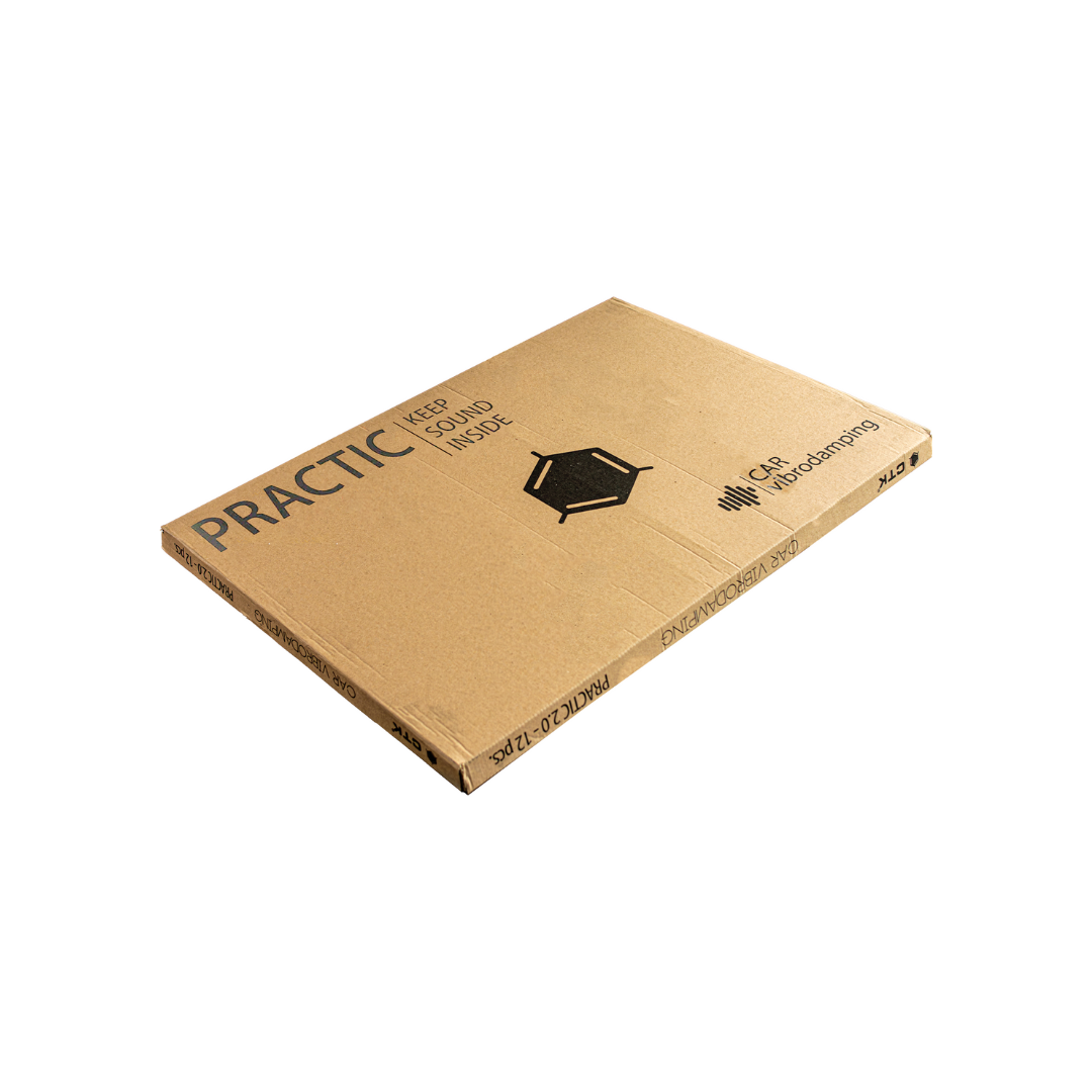 CTK Practic es un material insonorizante básico con baja frecuencia de resonancia, buena adhesión a la superficie y gran flexibilidad. Está basado en un compuesto de butilo y polímeros. Se fabrica en láminas con una capa adhesiva en una cara. En el exterior, cuenta con una capa de aluminio gofrado de 60 micras (0,06 mm) de espesor, lo que facilita su aplicación en formas irregulares, refuerza el material, proporciona protección mecánica y mejora sus propiedades acústicas. CTK Practic tiene un espesor universal de 2 mm y está diseñado para la absorción básica de vibraciones, sonido y resonancia de todos los componentes esenciales de la carrocería, como el techo, el capó, el salpicadero, las puertas, los paneles de las puertas, el suelo, la tapa del maletero, etc. Los materiales de la serie CTK Practic combinan calidad, buenas propiedades de amortiguación y un precio atractivo. Por ello, son ampliamente utilizados en diversas áreas. El uso principal de los materiales antivibratorios es la reinstalación o mejora del aislamiento acústico de vehículos, la mejora de la acústica antes de su instalación y el uso de equipos de audio. Además, estos productos pueden emplearse en equipos industriales, informáticos y de aire acondicionado, e incluso para silenciar el sonido de lavabos, platos de ducha y bañeras. El producto es atóxico, impermeable, no absorbe la humedad ni se descompone con la intemperie. Posee propiedades anticorrosivas y de sellado. CTK Practic puede instalarse sin necesidad de calefacción, pero recomendamos trabajar con este producto a temperaturas entre +10 °C y +30 °C. La superficie debe estar seca, limpia y bien desengrasada. Durante la instalación, el material antivibratorio debe presionarse firmemente con un rodillo para evitar la formación de burbujas de aire y que se adhiera firmemente a la superficie.