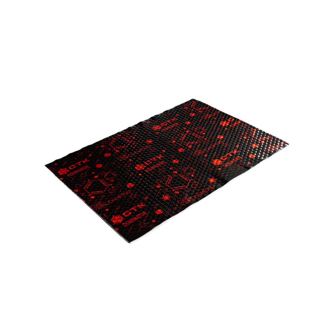 Este material compuesto presenta una alta viscosidad y un factor de pérdida mecánica (FML) muy elevado, incluso superior al de la serie Premium. Además, se utiliza una lámina de aluminio de 200 micras de espesor, más de una vez y media más gruesa que los materiales de otras marcas. A pesar de ello, CTK Dominator sigue siendo ligero. Los materiales de la serie CTK Dominator son ideales para instalaciones modernas y sistemas de audio para automóviles con niveles de presión sonora extremos que requieren una reducción eficaz de las vibraciones y el ruido. Estos materiales son especialmente eficaces para reducir las vibraciones en los elementos de la carrocería y aumentar la rigidez en superficies grandes como el techo, el suelo, los paneles laterales y las puertas.